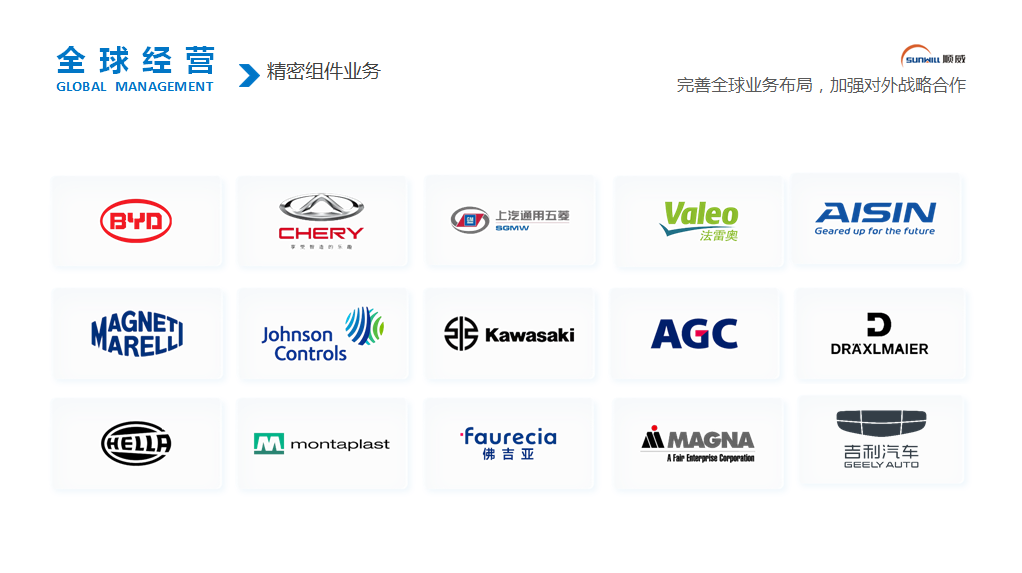 作為“風(fēng)葉+汽車(chē)”雙引擎戰(zhàn)略驅(qū)動(dòng)的全球化智能制造產(chǎn)業(yè)集團(tuán),公司擁有23家分子公司,4個(gè)研發(fā)實(shí)驗(yàn)中心,3個(gè)省級(jí)技術(shù)中心,600多項(xiàng)專(zhuān)利,下轄8家省級(jí)“專(zhuān)精特新”企業(yè),13個(gè)國(guó)內(nèi)外生產(chǎn)基地,總生產(chǎn)面積近40萬(wàn)㎡,年產(chǎn)能超2億件,具備全球化、多基地配套運(yùn)營(yíng)能力。未來(lái),順威股份將繼續(xù)圍繞“風(fēng)葉+汽車(chē)”產(chǎn)業(yè)發(fā)展定位,積極布局高端制造業(yè)、新能源汽車(chē)零部件行業(yè),提升新質(zhì)生產(chǎn)力,為粵港澳大灣區(qū)培育壯大先進(jìn)制造業(yè)集群貢獻(xiàn)力量。