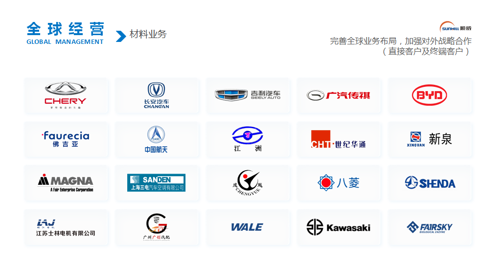 順威材料事業(yè)部目前有順德、昆山、武漢三個(gè)生產(chǎn)基地,三基地總產(chǎn)能10萬(wàn)噸/年。